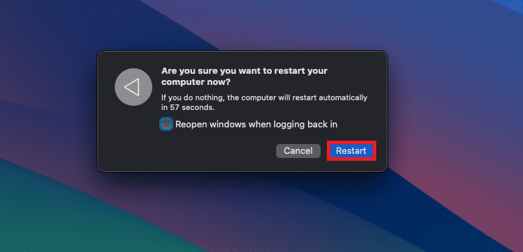 - Click on Restart again to restart your Mac.