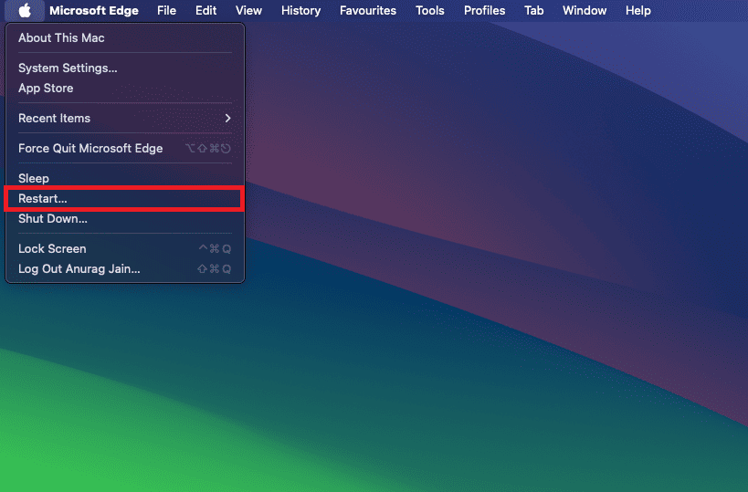 - Open the Apple Menu from the top left corner and then click on Restart .